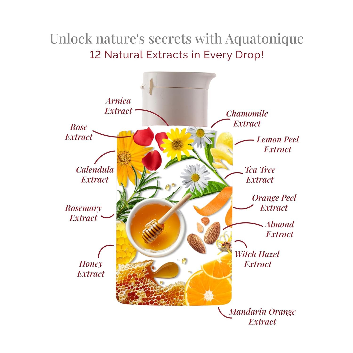 Introducing Aquatonique Micellar Water & Toner, your ultimate skincare multitasker. This innovative formula combines the cleansing power of micellar water with the toning benefits of a toner, providing a comprehensive skincare solution in one convenient bottle. Effortlessly remove makeup, dirt, and impurities while toning and refreshing your skin in a single step. Crafted with gentle yet effective natural ingredients like Tea Tree, Witch Hazel, Rosemary, Chamomile, Honey, Almond, Rose, Lemon Peel, Mandarin orange, Orange peel etc., our micellar water and toner hybrid cleanses without stripping the skin of its natural moisture, leaving it clean, refreshed, and balanced. Suitable for all skin types, including sensitive skin, Aquatonique is a must-have addition to your daily skincare routine. Elevate your regimen and experience the convenience of dual-action cleansing and toning for healthier, more radiant skin.