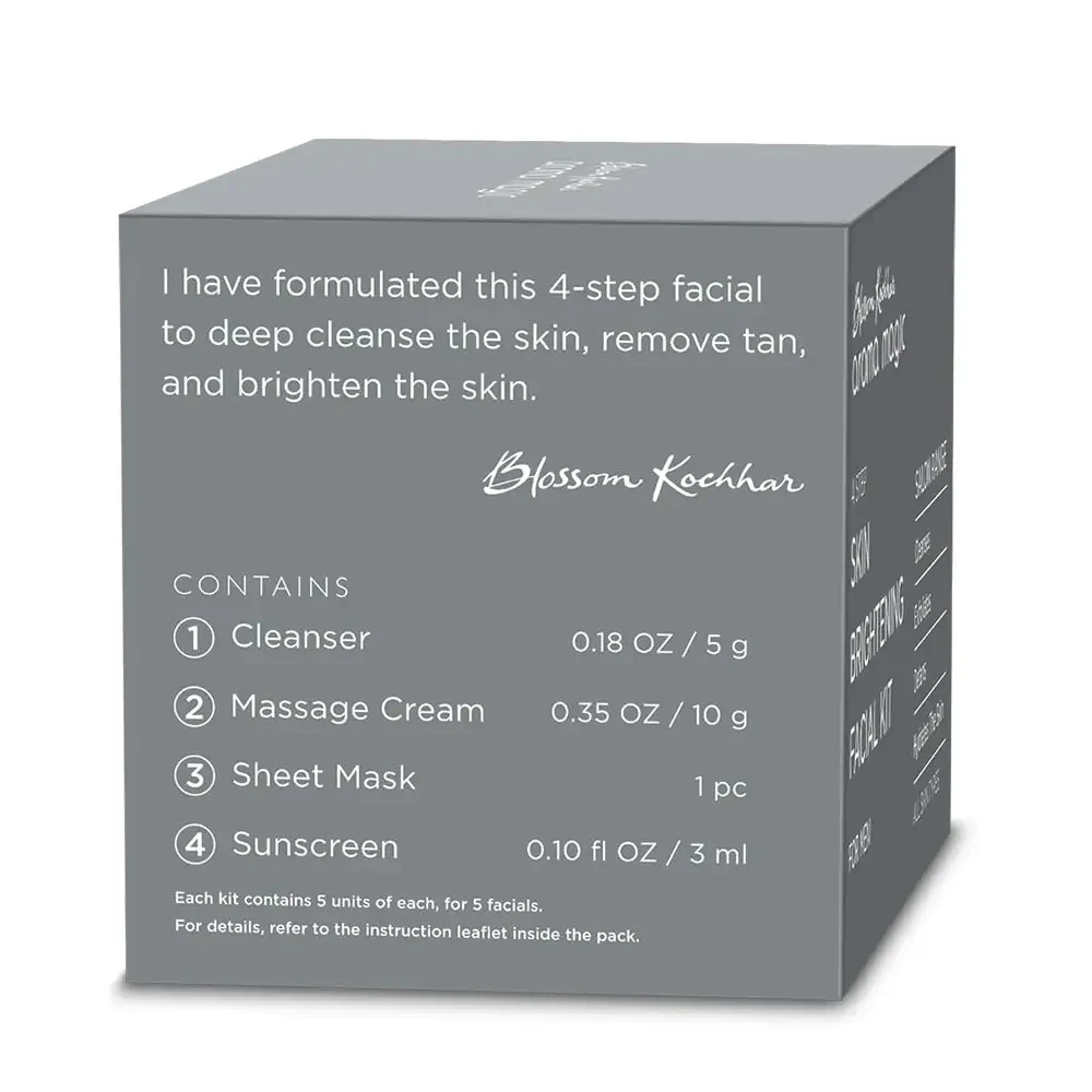 Blossom Kochhar Aroma Magic Skin Brightening Men's Facial Kit is an aromatherapy-based solution designed to rejuvenate and enhance men's skin. This 4-step facial kit effectively deep cleanses the skin, while also targeting tan removal and skin brightening. Formulated with natural ingredients, it offers a refreshing and revitalising experience, leaving the skin cleansed, toned, and noticeably brighter.