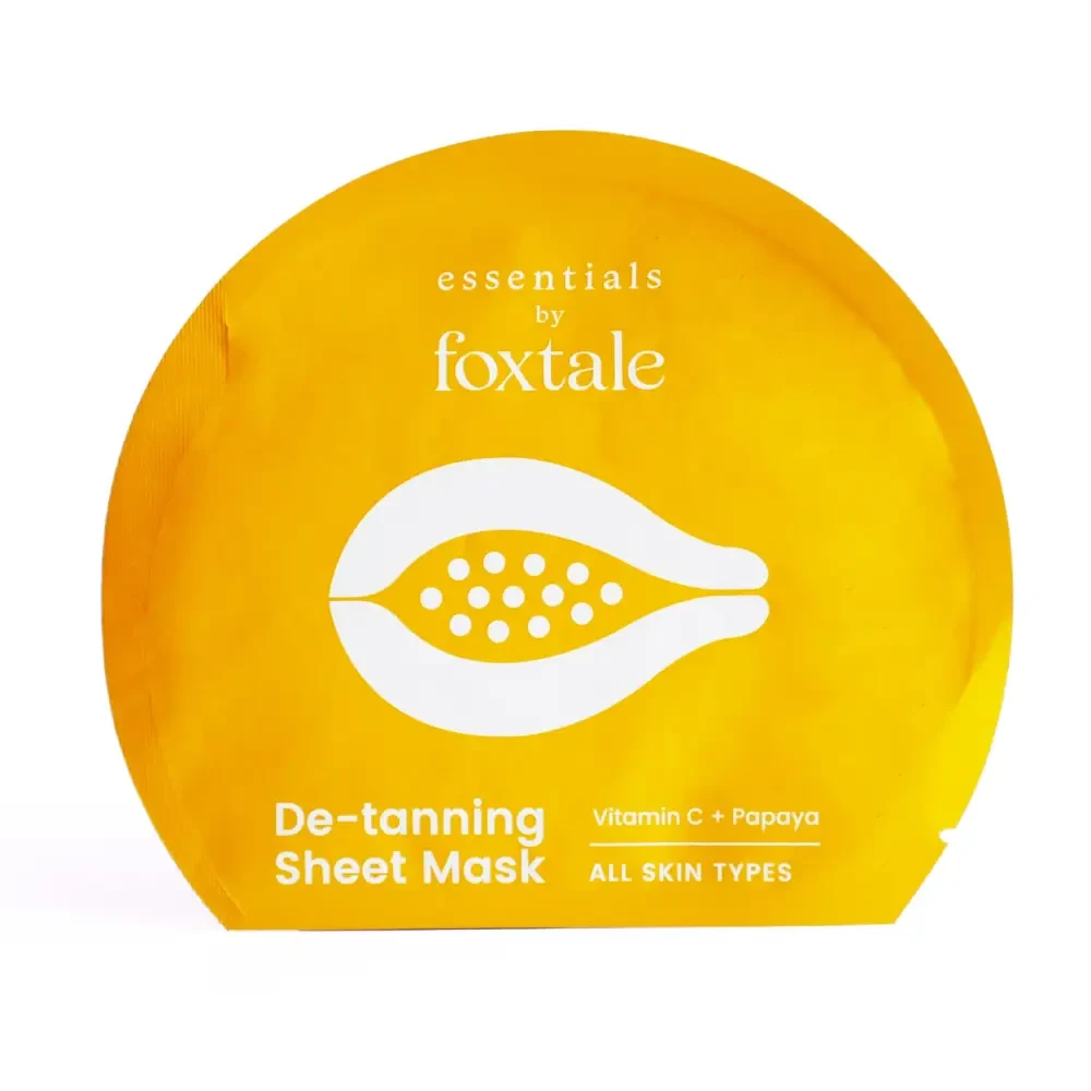 Foxtale De-Tanning Sheet Mask with Vitamin C & Papaya brightens, rejuvenates, and reduces tan for glowing skin. Brightens Skin: Vitamin C and papaya work together to lighten dark spots and even skin tone. Reduces Tan: Helps in fading sun tan and gives a radiant glow to the skin.