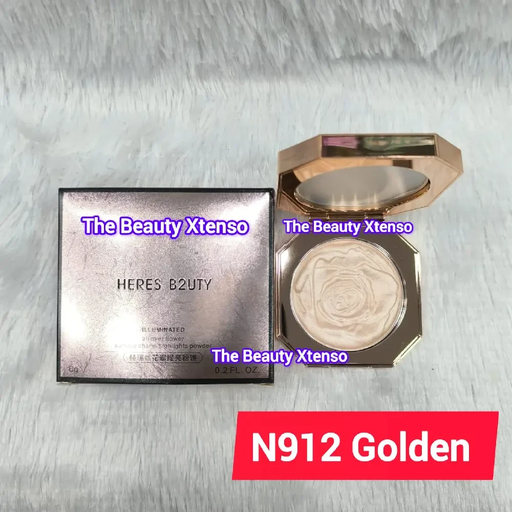 The "Heres Beauty Highlighter N912 Golden" is designed to add a golden glow to the face and body.