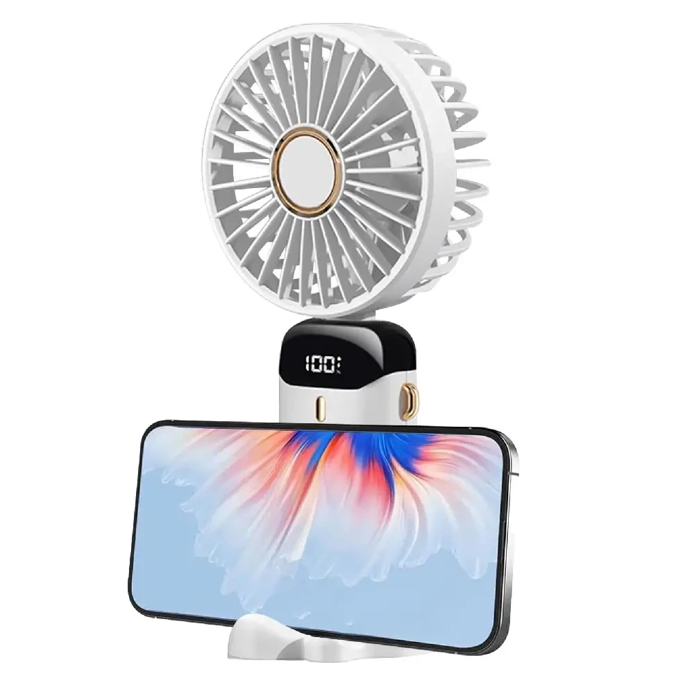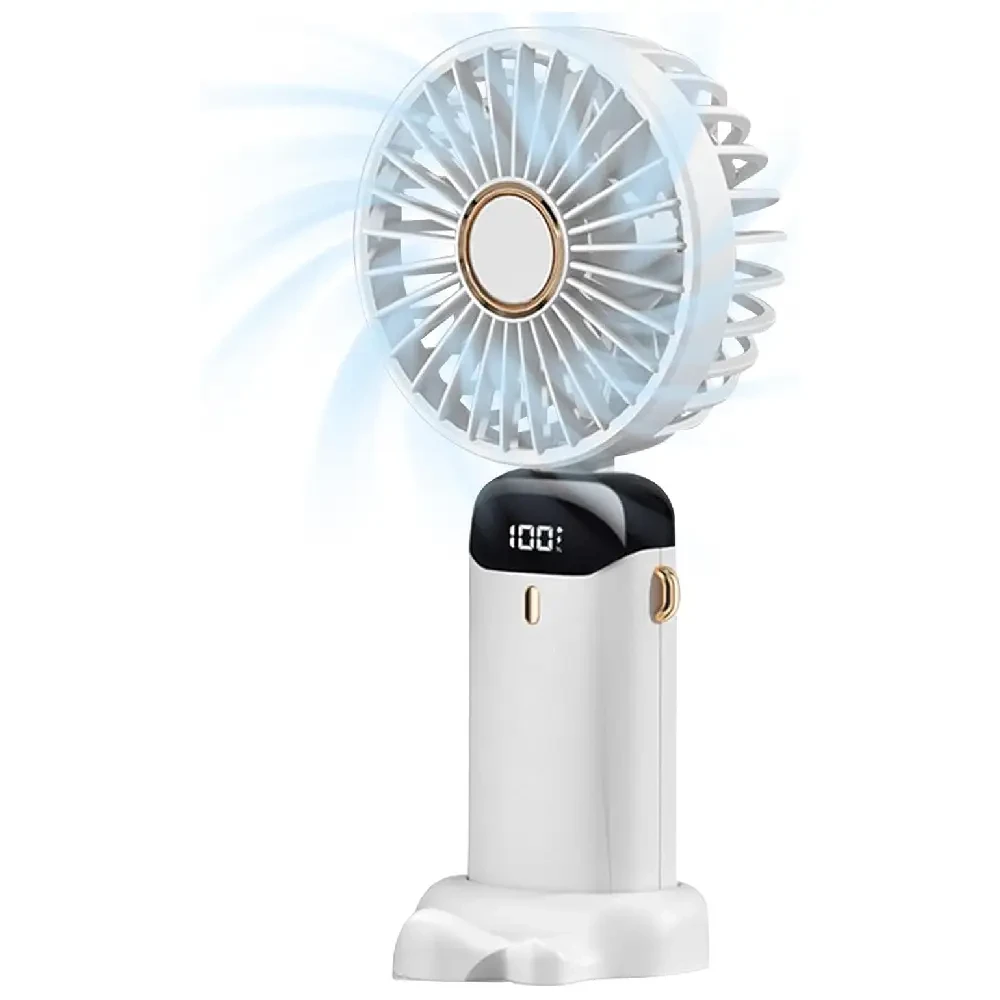 Handheld Electric Fan,LED Handheld Fan with Phone Holder | Portable Handheld Foldable Fan, 5 Speeds, USB Rechargeable Fan with LED Display.