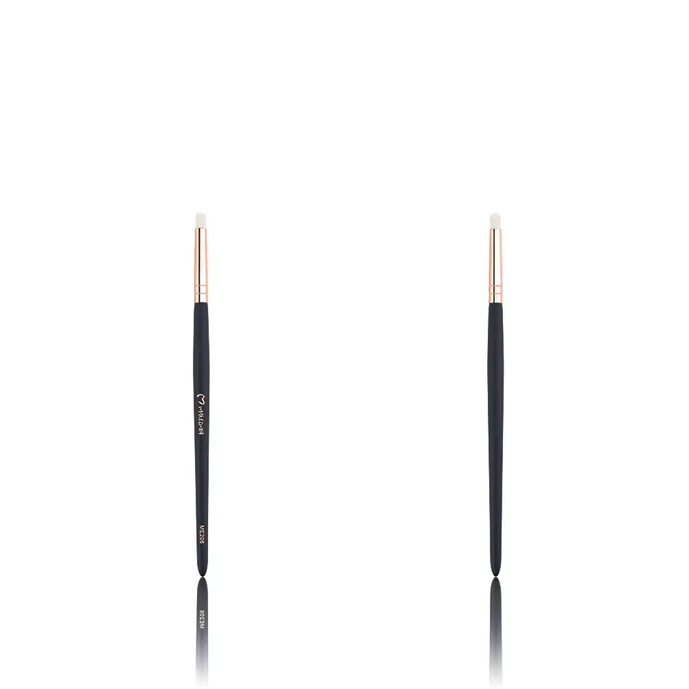 The Makezmia Detailed Pencil Brush, model ME 206, is a precision makeup brush designed for detailed application and smudging. It features a firm, tapered shape, ideal for defining the lash line, smudging eyeliner, and highlighting specific areas. The brush is compact, allowing for targeted application on smaller areas of the face.