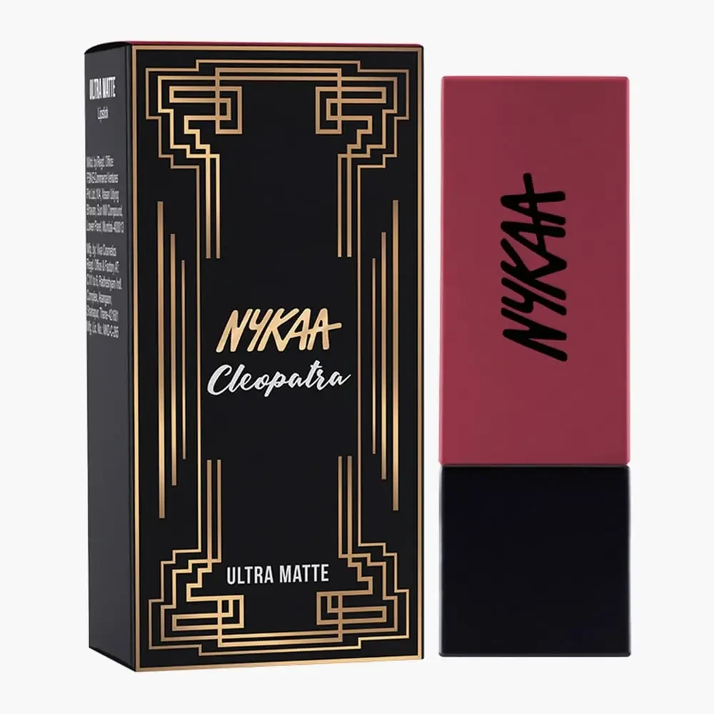 Nykaa Ultra Matte Lipstick in the shade Cleopatra 08 offers a bold, long-lasting, and richly pigmented matte finish. It's designed with a smooth, creamy texture that glides on effortlessly and is enriched with Vitamin E to keep lips nourished. The lipstick delivers intense color payoff with just one swipe and is known for its weightless, non-sticky, and long-lasting formula.