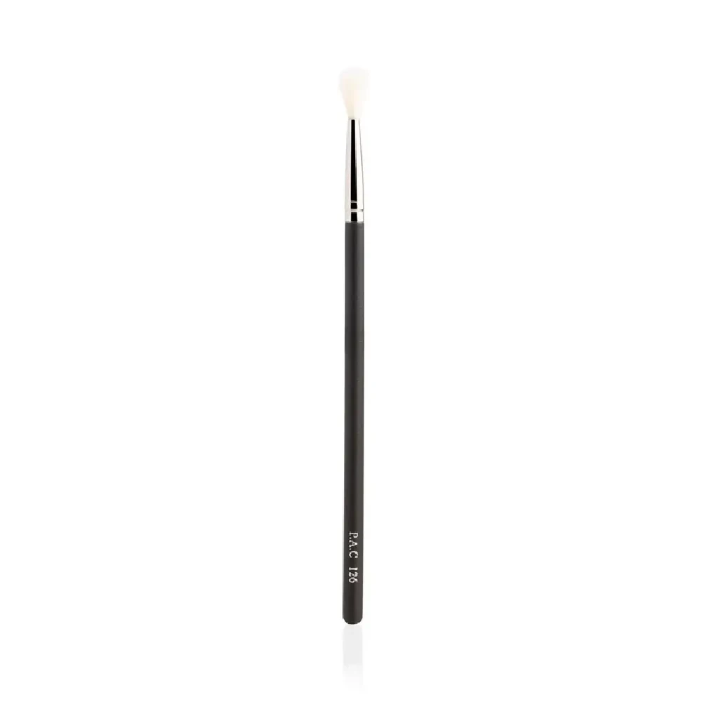 The PAC eyeshadow blending brush 126 is a fine, Detail Round Blender Brush with a domed tip for controlled placement of crease color that still has a soft, diffused look.