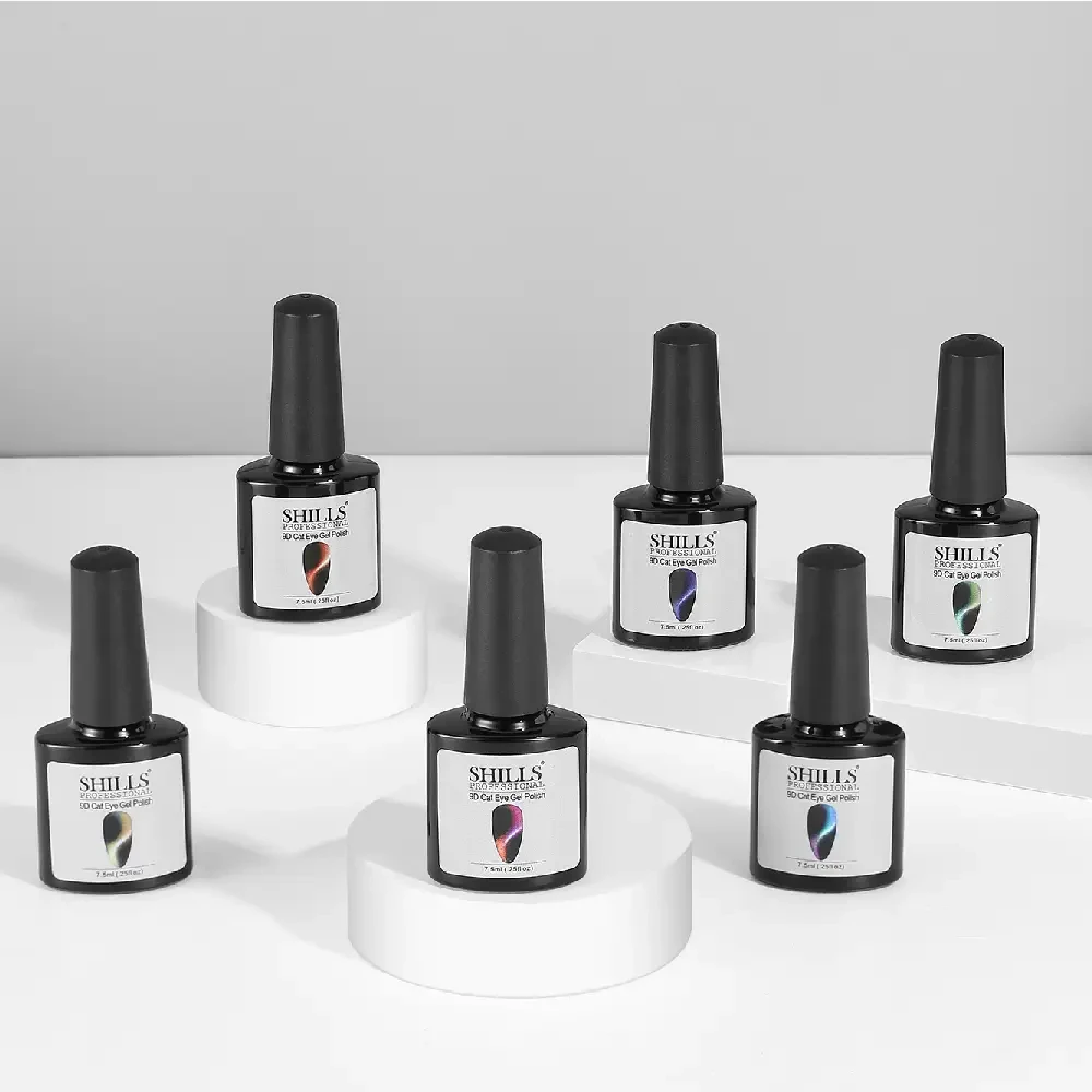 The Shills Professional Cat Eye Gel Polish Kit is a premium nail care set designed to deliver stunning, multidimensional effects with ease. This kit features a selection of high-quality gel polishes that create a mesmerizing cat eye effect, characterized by a luminous, shifting sheen reminiscent of a cat’s eye. Each polish in the kit contains magnetic particles that, when manipulated with a magnet, produce a dramatic, reflective pattern that catches the light from various angles. Ideal for achieving a salon-quality, eye-catching look, this kit is perfect for both professional use and home nail art enthusiasts.