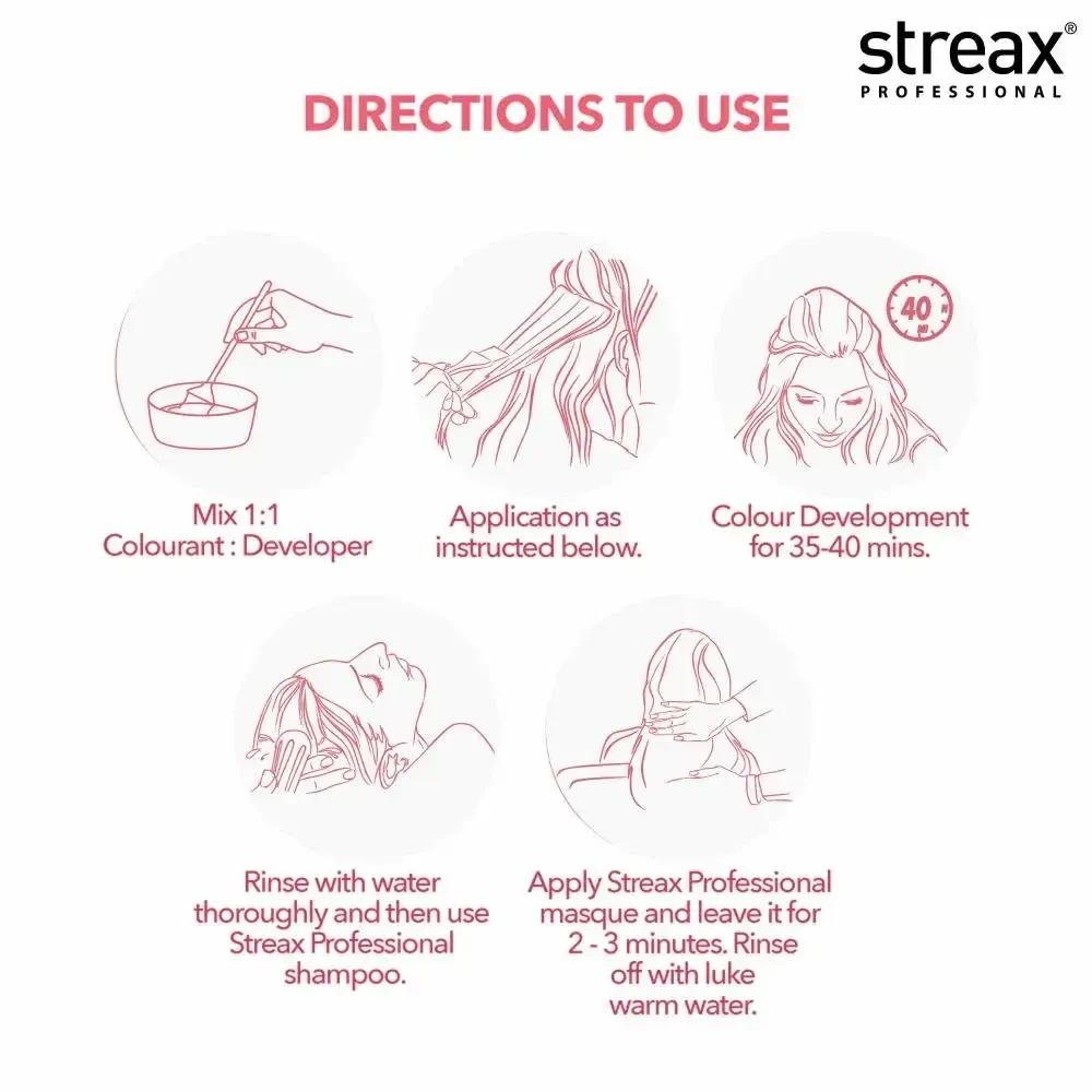 Streax Professional Argan Secrets Hair Colourant Cream gives Vibrant, rich colour plus softness, bounce and shine . Infused with Argan Oil and Walnut Oil to help nourish hair and counter dryness. Enriched with an unique Silicone Active System to help seal in moisture and protect hair colour, keeping it radiantand lustrous for longer.