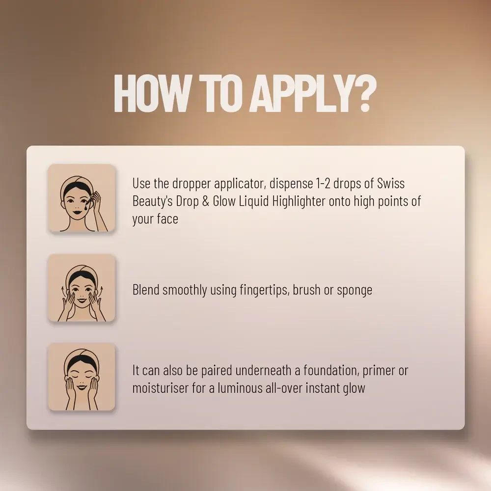 Say goodbye to crease-prone makeup finishes and hello to flawless, glowing skin with Swiss Beauty's Drop & Glow Liquid Highlighter. It's perfect for achieving a soft, dewy, and oil-free finish, making it a must-have in your makeup collection.