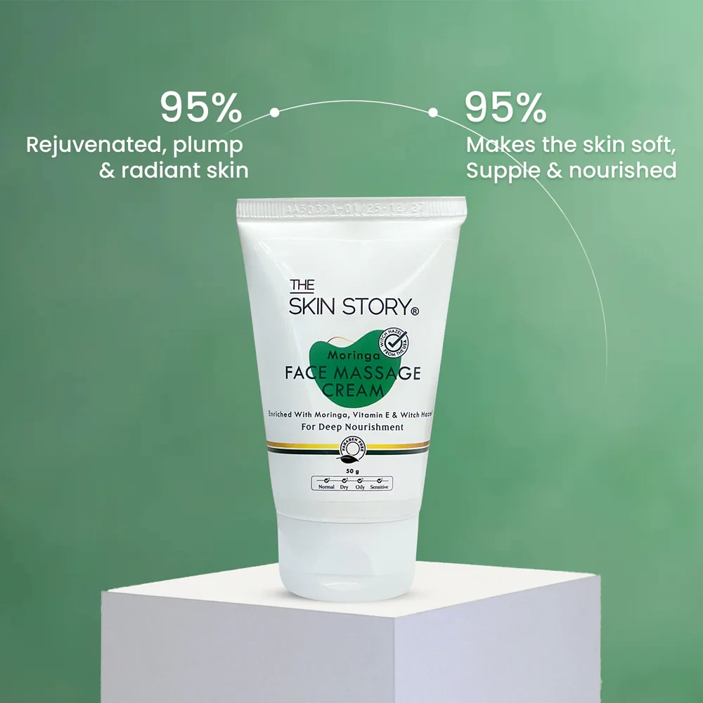 - Advanced Skin Rejuvenation: Moringa Face Massage Cream combines Moringa, Fucogel, and Witch Hazel to promote a youthful radiance, deeply nourishing and repairing your skin.