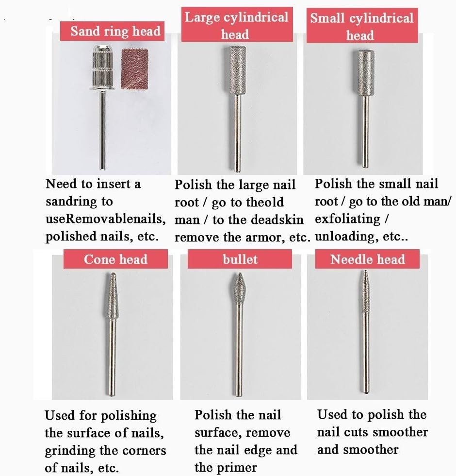 - Multifunctional: Designed with 6 kinds of metal bits (also works with all kinds of 3/32” shank bits) and 6 sanding bands, which are used for grinding, carving, cutting, polishing for all nail arts as well as cuticle removal.